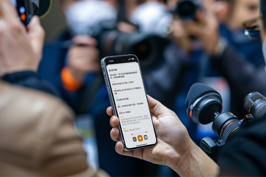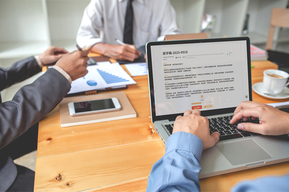 打開 App,點選下方的錄音圖示,即可開始即時錄音並自動轉錄逐字稿。完成後,可在逐字稿畫面右上角點選「匯出」,將檔案保存。